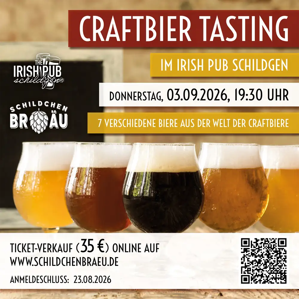 Das nächste Craftbier-Tasting im Irish Pub Schildgen findet am 21.05.2026 statt. Am besten schon jetzt anmelden und euren Platz sichern!