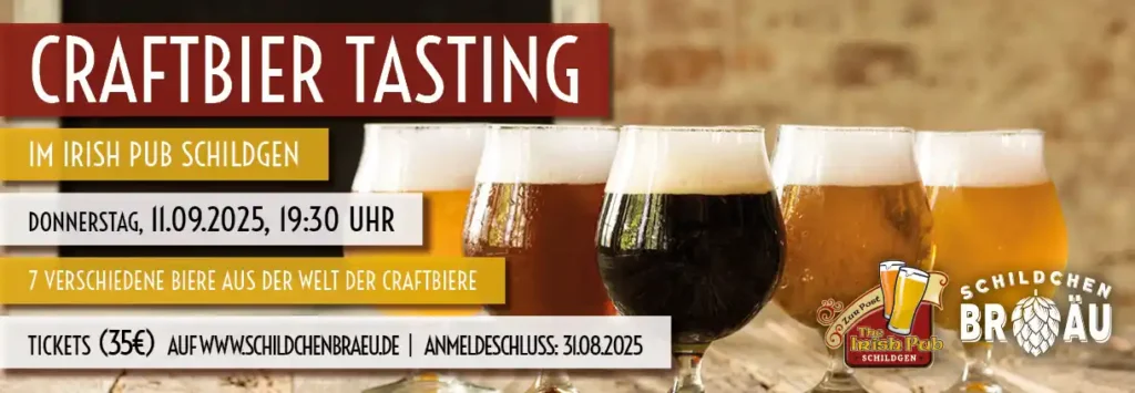 Nach einer kleinen Sommerpause geht’s am 11.09.2025 weiter mit unseren beliebten Craftbiertastings im Irish Pub Schildgen. Jetzt schon anmelden und euren Platz sichern!
